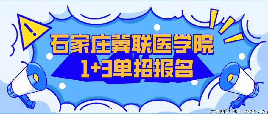 石家庄冀联医学院1+3单招怎么报名?石家庄冀联医学院1+3单招怎么报名?很多高中毕业生想通过单招考试升医学大专院校,石家庄冀联医学院专门为这些学生开设1+3对口单招升学班,那么怎么报名呢?报名有什么要求?下面杨老师为大家介绍一下石家庄冀联学院1+3对口单招班的招生要求。
