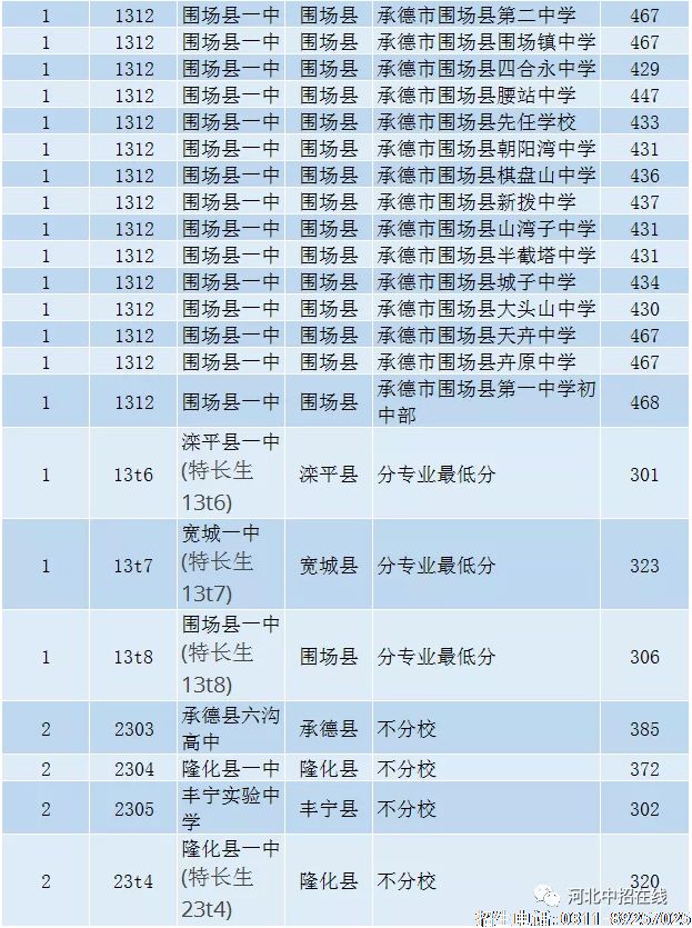承德高中2020年各高中录取分数线汇总中考即将来临,各位学生家长都在咨询关于往年各中学录取分数线,来评估入学学校,今天河北中考网刘老师整理了2020年承德各高中录取分数线,一起来看看吧! 录取最低控制分数线和实际录取分数线有差异 一些数据为网络整理数据,仅供参考 请以各学校实际录取分数线为准! 2020年承德市普通高中招生录取情况