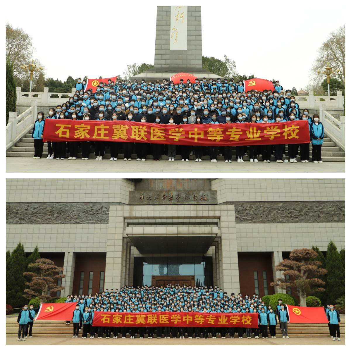 石家庄冀联医学院开展学生2023年清明英烈祭扫活动石家庄冀联医学院开展学生2023年清明英烈祭扫活动 英灵不朽,山河永念。又是一年清明时,2023年3月25日,石家庄冀联医学中等专业学校开展2023年清明英烈祭扫活动,在全校营造崇尚英烈、缅怀英烈、学习英烈、捍卫英烈的浓厚氛围,凝聚起奋进新征程、建功新时代的磅礴力量。 烈士纪念碑前,全场肃立,默哀致敬,我校三百多名学生与教师向革命烈士敬献花篮和鲜花,表达对革命先烈的敬仰和追思,全体团员面对鲜红的团旗重温入团誓词,在共产主义战士白求恩的墓前敬献鲜花,并参观了红色革命文化主题长廊。缅怀英烈,是穿越时空的致敬与捍卫。此次活动旨在厚植爱国主义情怀,引导学生知史爱党、知史爱国,号召全体同学勿忘国耻、和衷共济、砥砺前行、强我中华。 清明祭英烈,传承爱国情。让我们向英雄烈士致敬,赓续红色血脉,弘扬英烈精神,激发奋进之力,让红色江山代代相传!