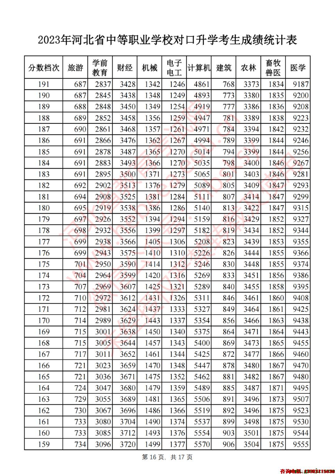2023年河北省中等职业学校对口升学考生成绩统计表