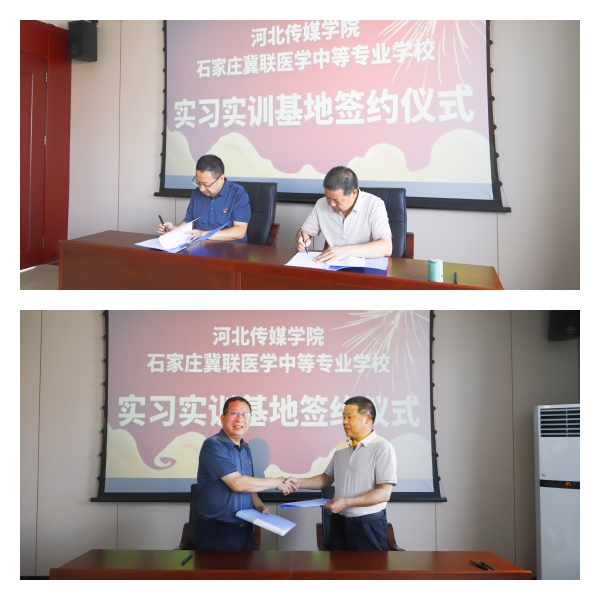 最后,经双方协商,河北传媒学院产教中心主任杨子文与张建奇董事长签订协议,并共同为河北传媒学院“产教融合实习实训基地”揭牌。
