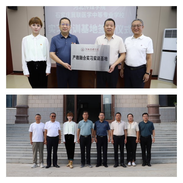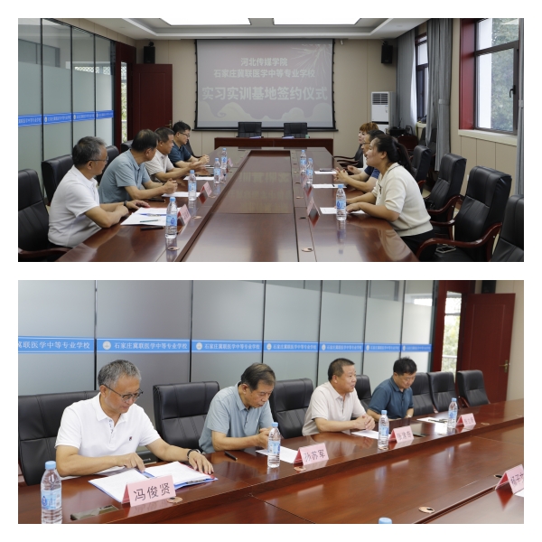 石家庄冀联医学院与河北传媒学院国际传播学院签订实习实训基地2023年9月5日,为贯彻落实习近平总书记关于做好高校毕业生就业工作的重要指示批示精神,同时提高石家庄冀联医学中等专业学校的师资水平,学校与河北传媒学院国际传播学院签订实习实训基地协议,并授予学校“产教融合实习实训基地”牌匾。河北传媒学院产教中心主任杨子文,国际传播学院党总支书记杨菲,国际传播学院就业工作负责人孙莹,冀兆联科技发展有限责任公司副董事长孙苏军,石家庄冀联医学中等专业学校董事长张建奇,校长冯俊贤,副校长张立新出席本次活动,会议由张建奇董事长主持。