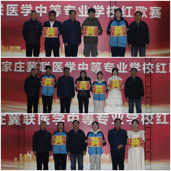 参加比赛的13支代表队经过激烈的角逐,经评委客观、公正的评分,最终2024级护理2班带来的《向往》荣获一等奖,2024级护理5班的《我爱你中国》、2024级口腔1班的《假如战争今天爆发》获得二等奖,2023级护理8班的《盛世如愿》、2023级护理13班的《当那一天来临》、2024级护理8班的《紫荆花盛开》获得三等奖,校领导给获奖班级颁奖并合影留念。