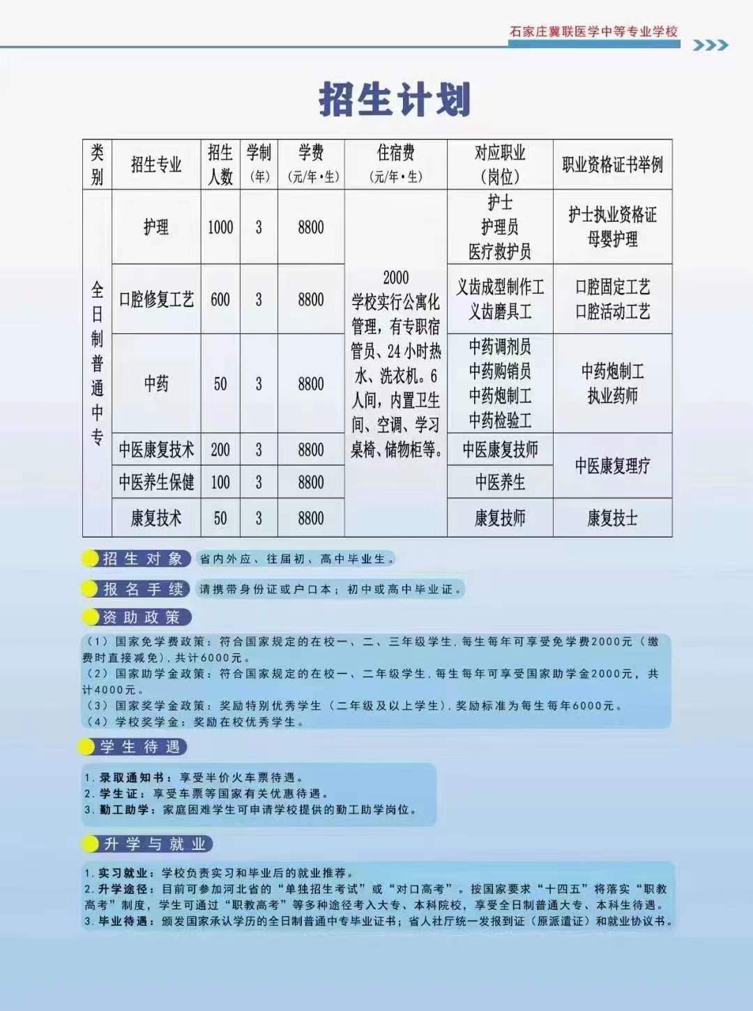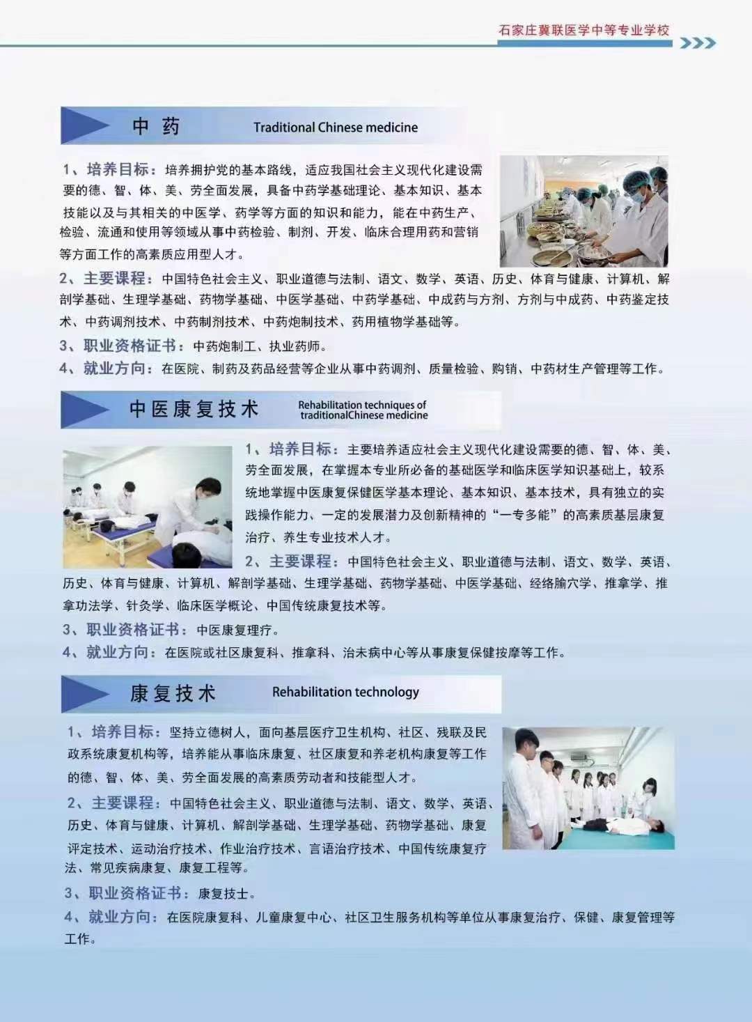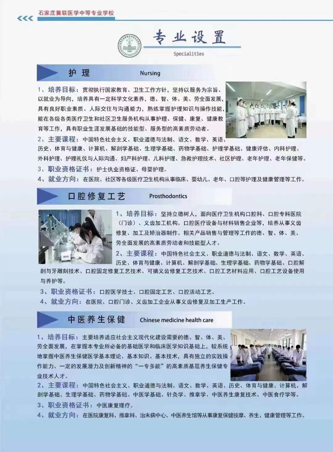 石家庄冀联医学院秋季招生简章石家庄冀联医学中等专业学校2022年招生简章 招生代码:6139